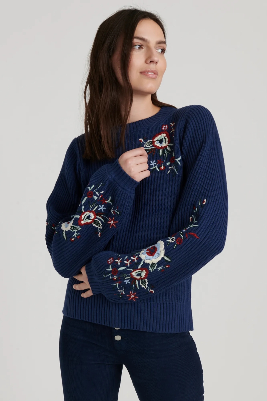 embroidered sleeve pullover