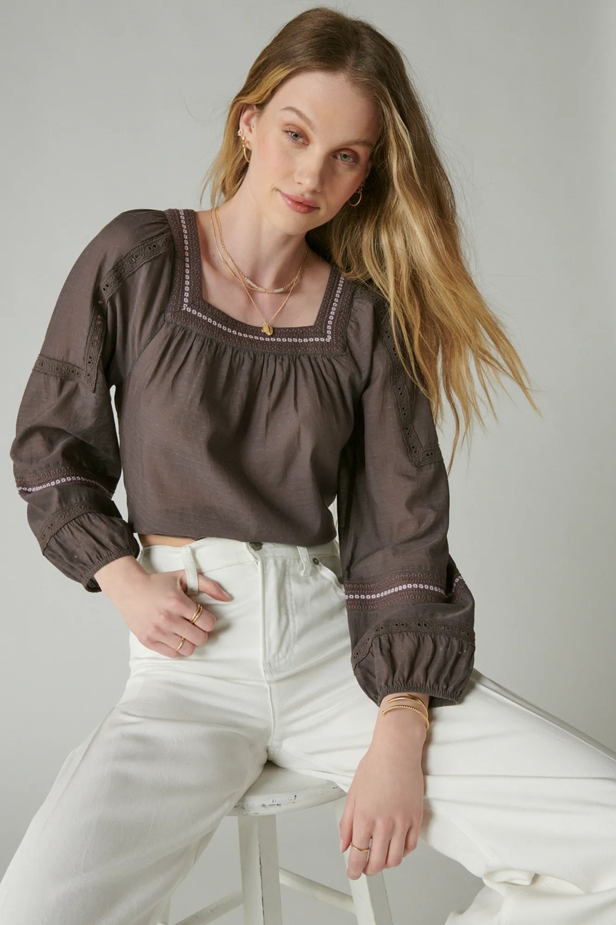 embroidered square neck blouse