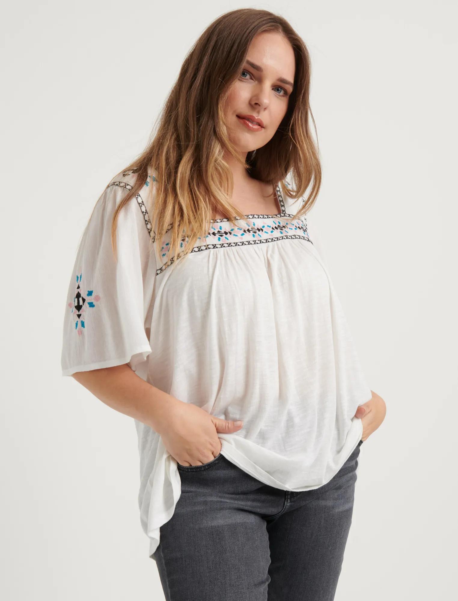embroidered square neck top