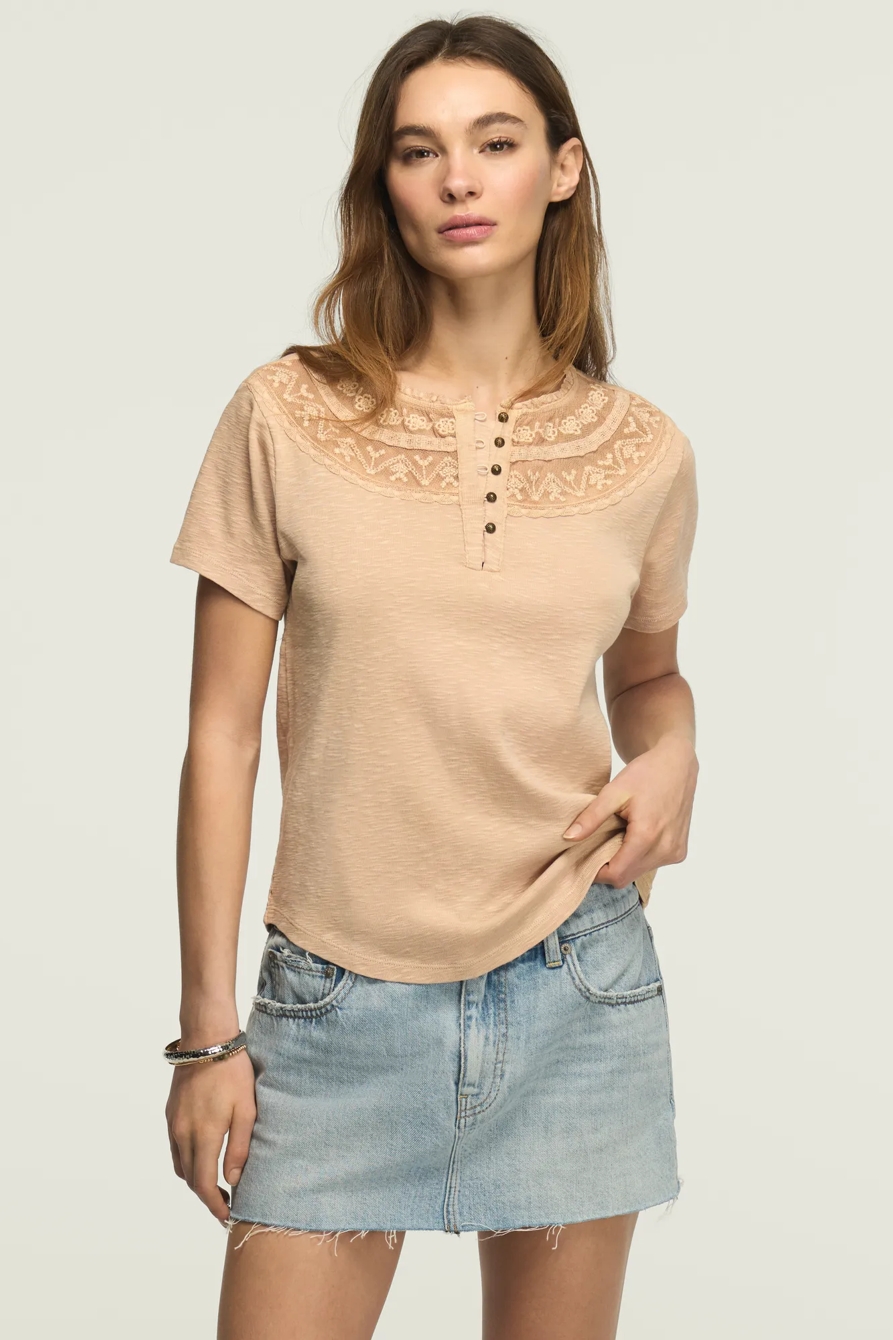 embroidered yoke henley tee