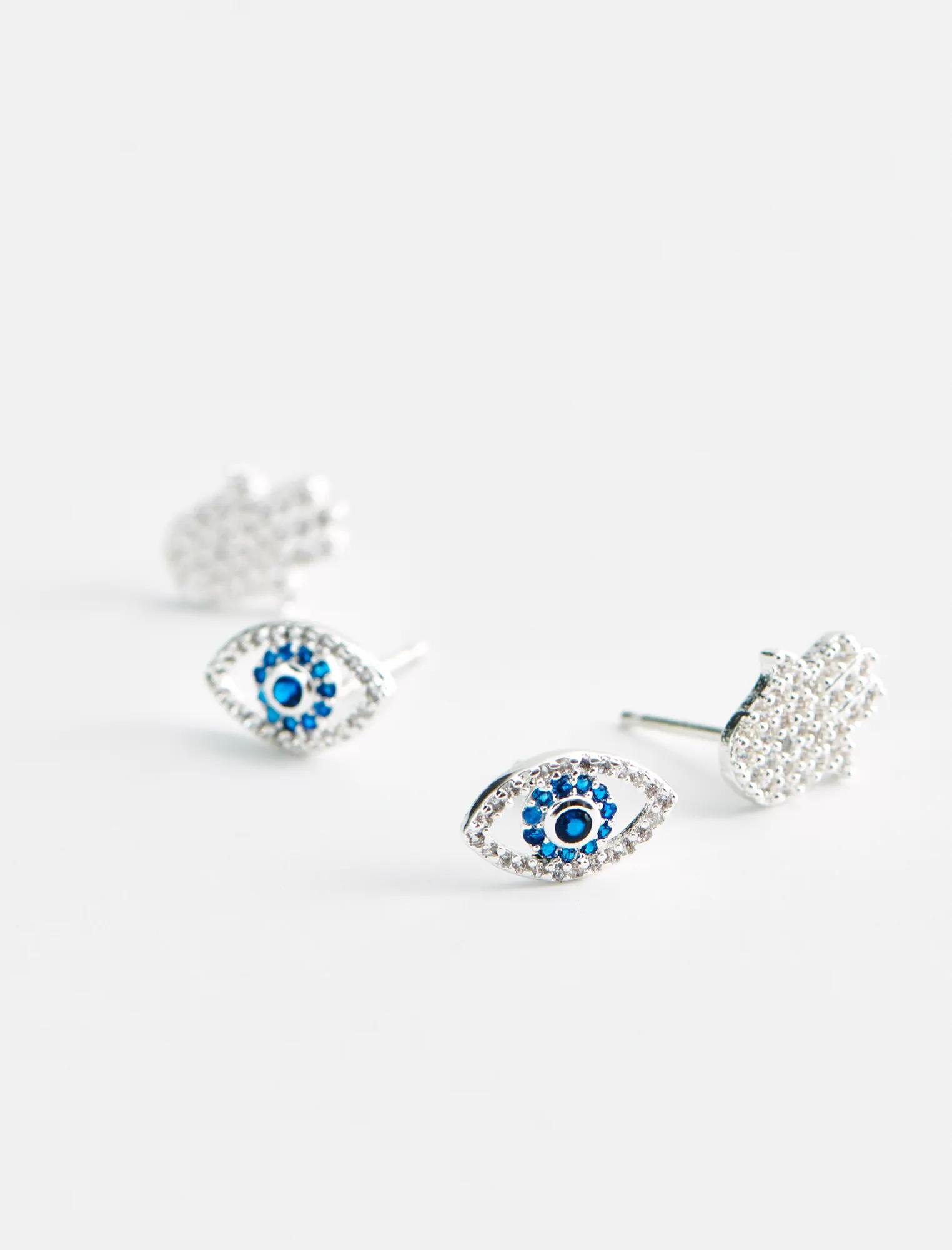 evil eye and hamsa delicate earring set