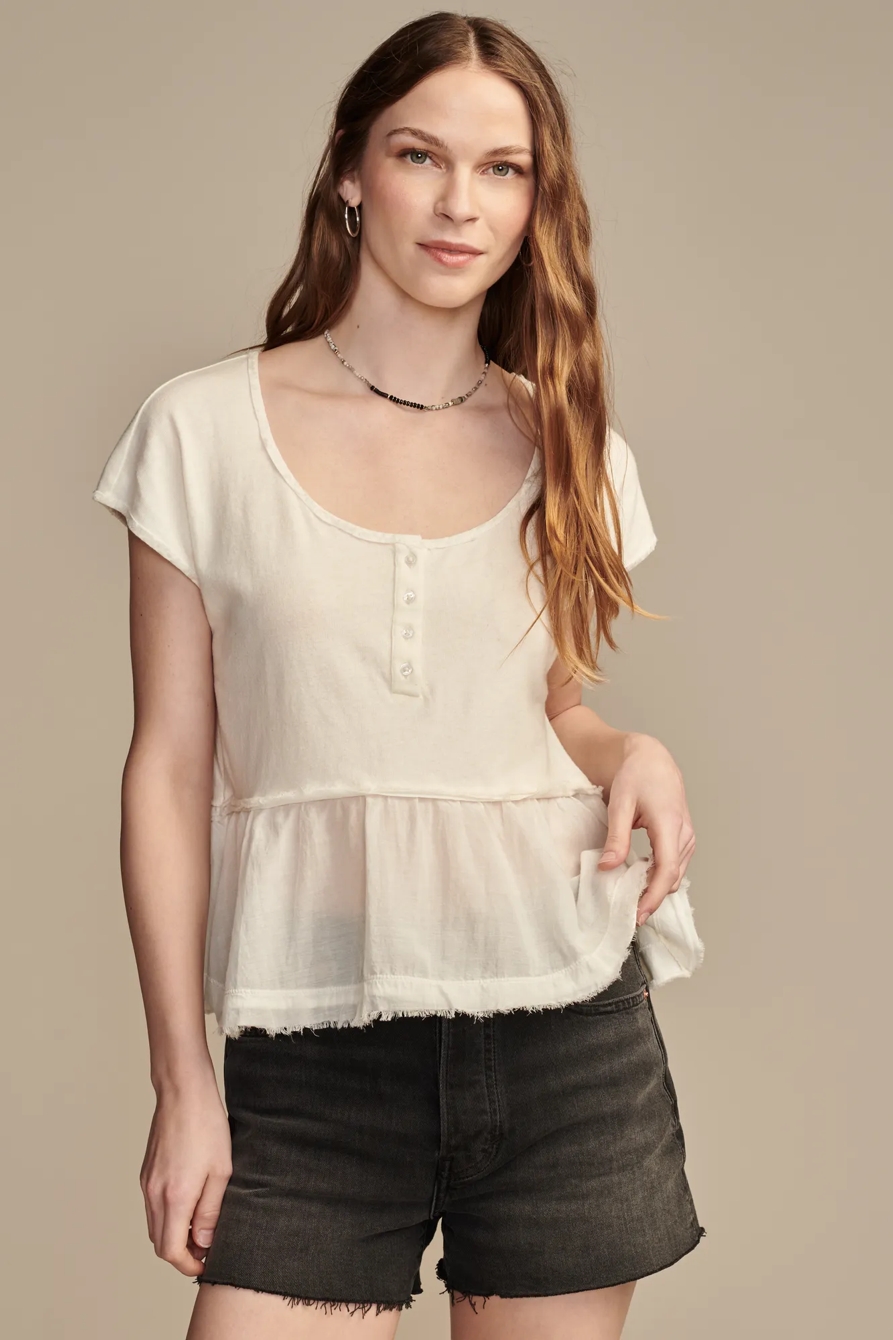 fabric mix short sleeve henley