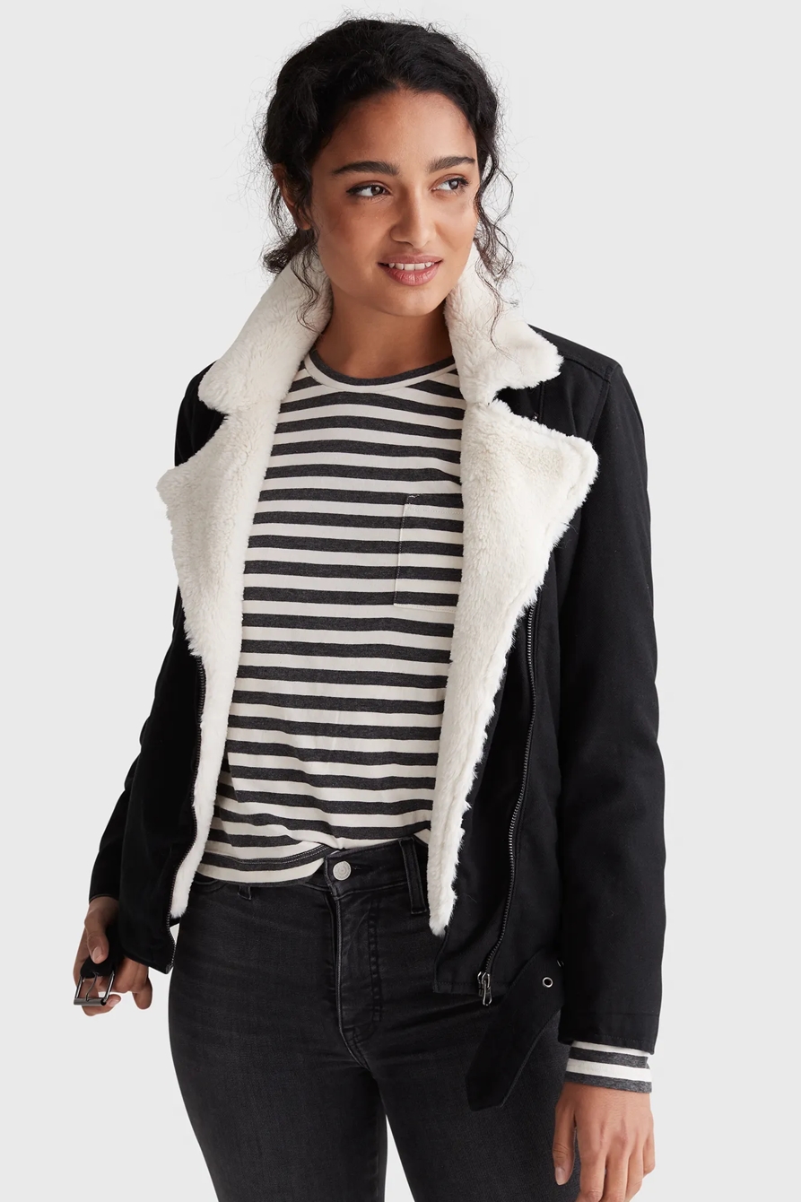 faux fur moto trucker jacket