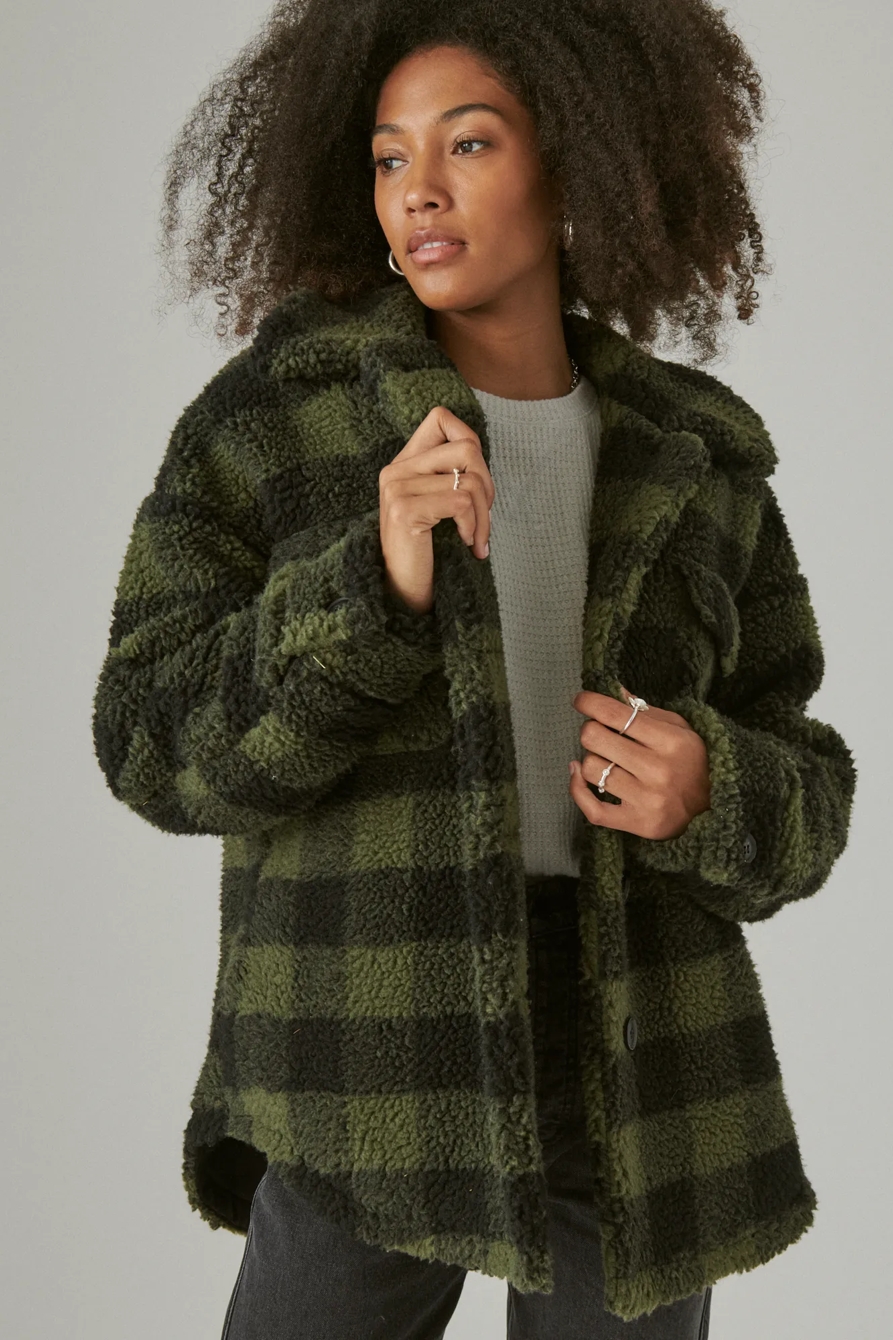 faux sherpa plaid coat
