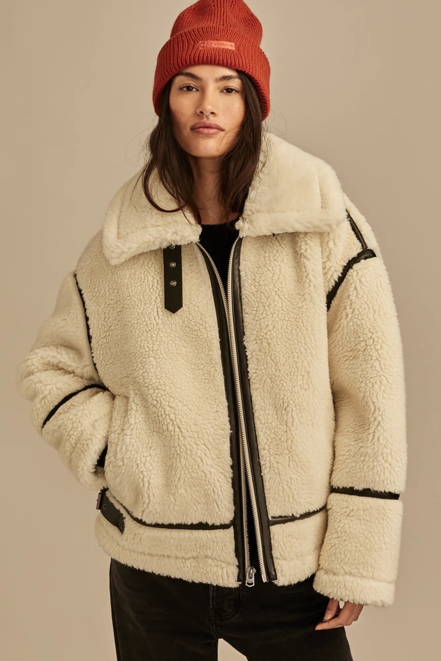 faux teddy moto jacket