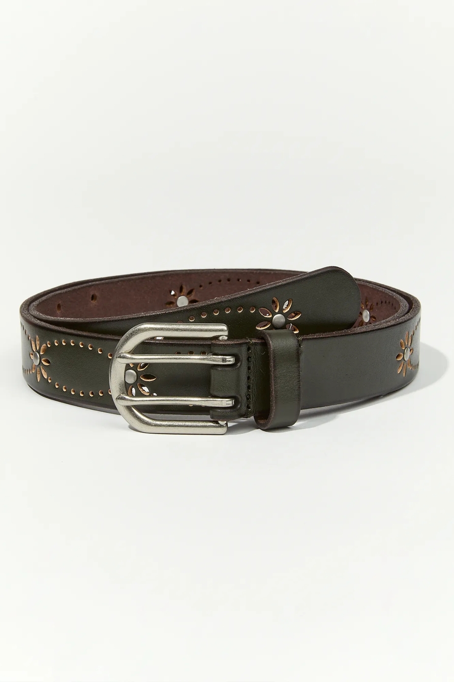 floral cut out leather belt