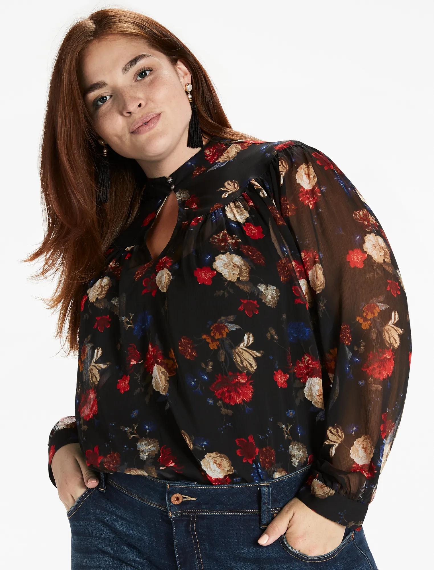 floral keyhole peasant top