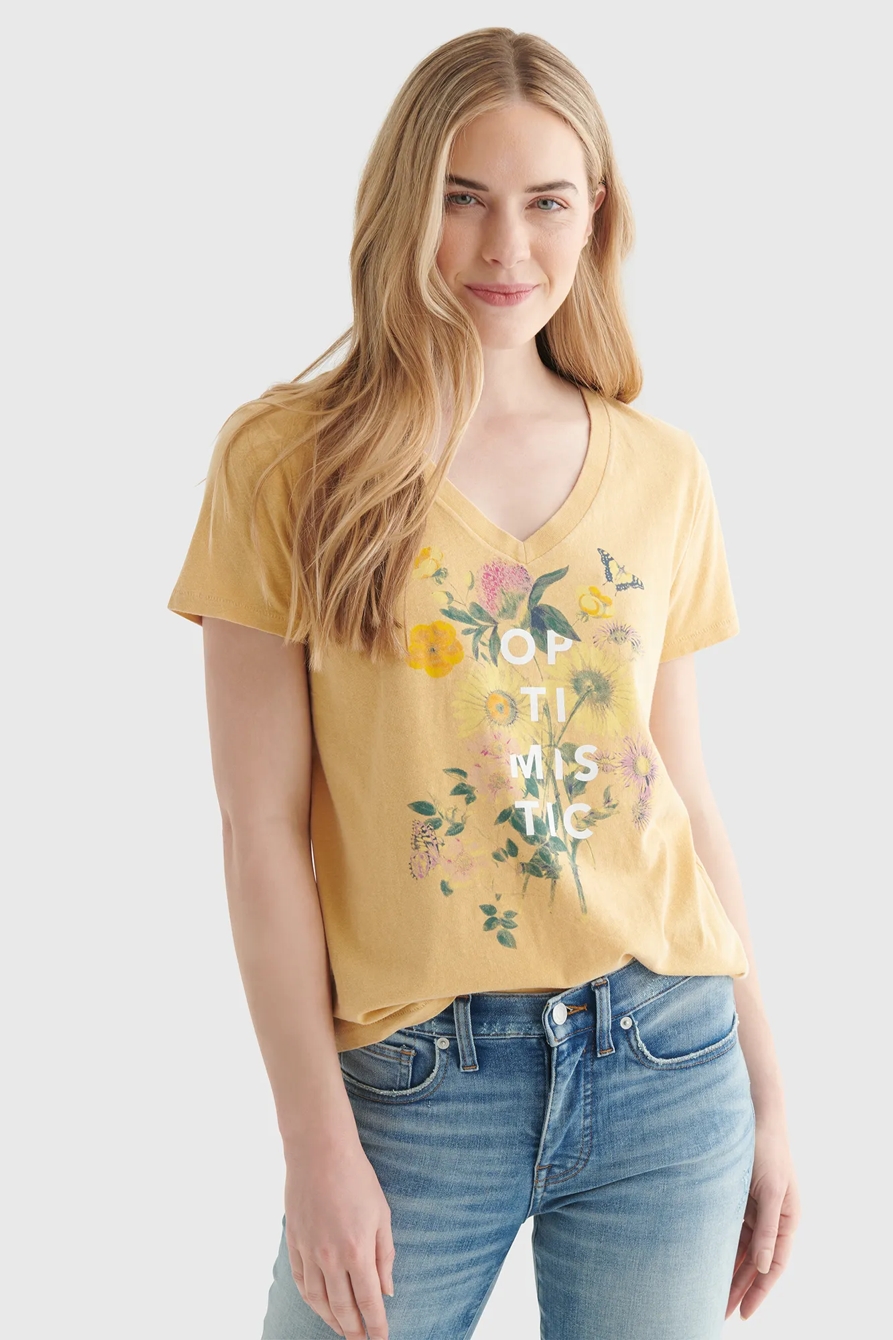 floral optimistic graphic v-neck tee