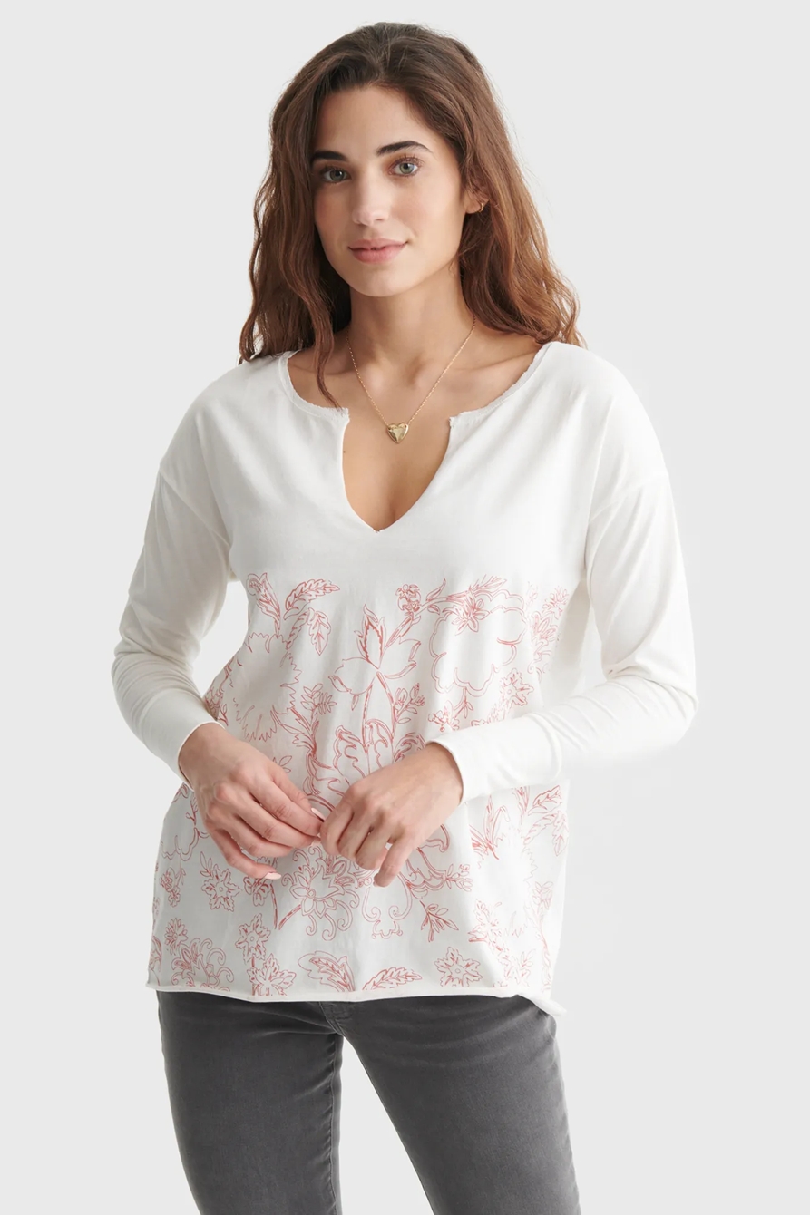 floral-print split neck top