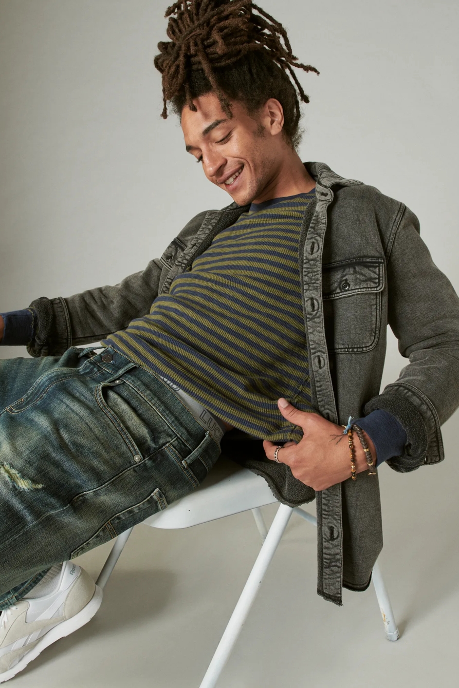 garment dye stripe crew neck thermal
