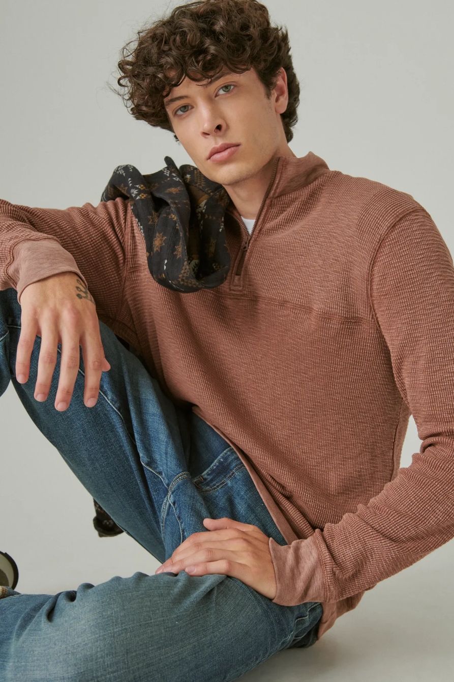 garment dye thermal mock half zip