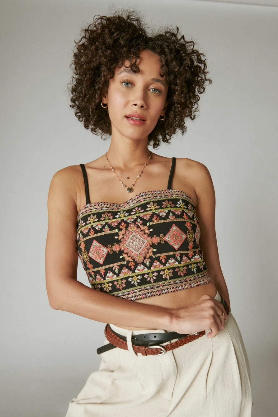 geo embroidered cropped tank