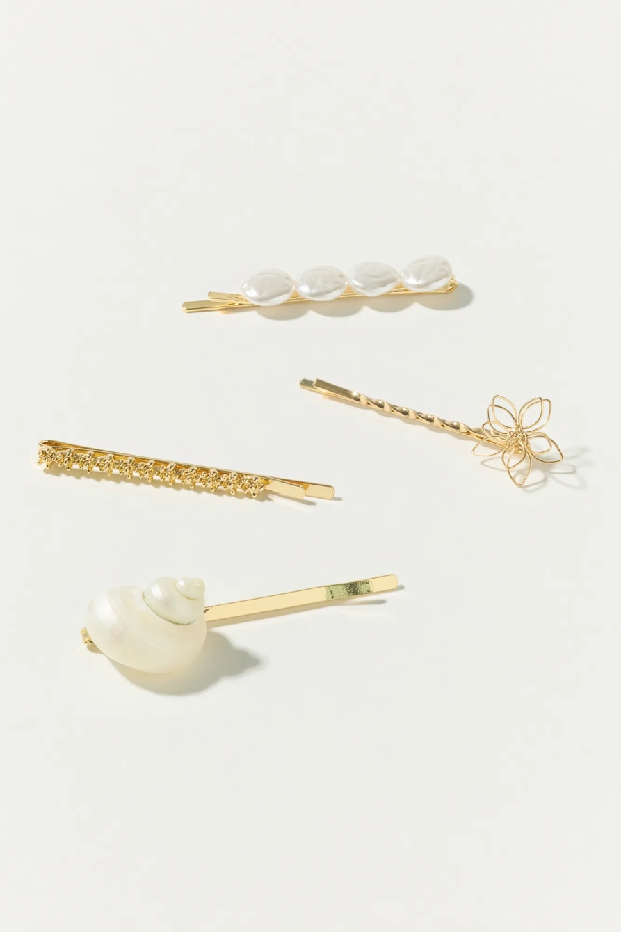 gold pearls barrette set