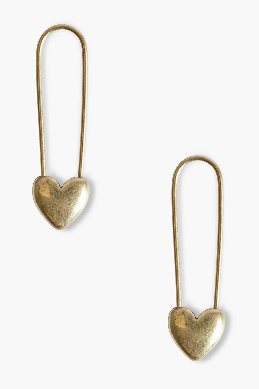 gold safety pin heart earrings