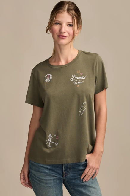 The Grateful Dead revolutionized American music, creating a cultural phenomenon that continues to inspire generations. Lucky Brand's exclusive Grateful Dead collection pays homage to this legendary band through thoughtfully crafted apparel that captures their free-spirited essence. Each piece features authentic iconography, including the band's signature dancing bears, skulls, and roses, meticulously rendered on premium fabrics. From vintage-washed graphic tees to custom-embroidered denim, this collection blends Lucky Brand's California heritage with the Grateful Dead's timeless artistic vision.