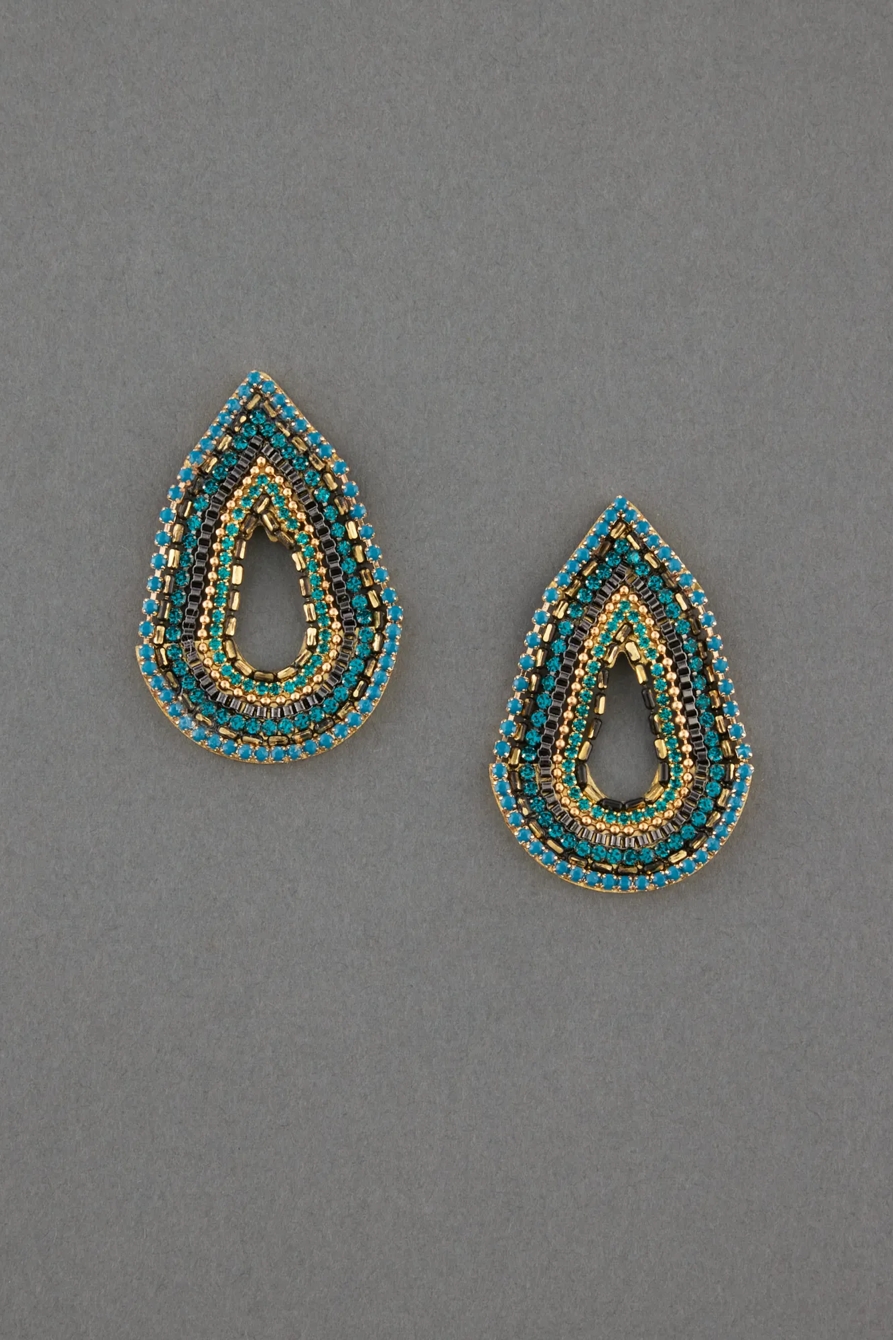green statement teardrop stud earring