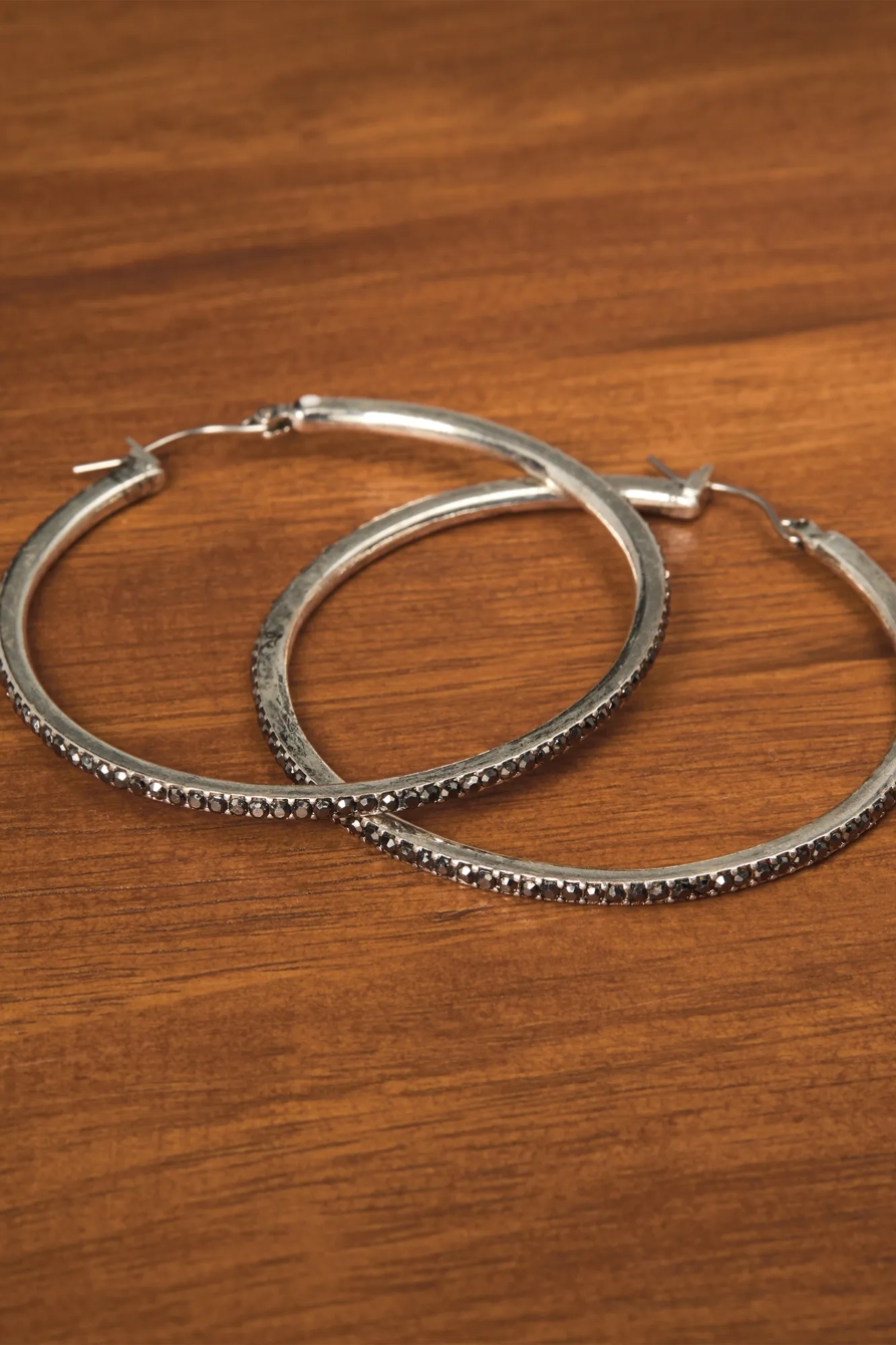 grey crystal hoop earrings