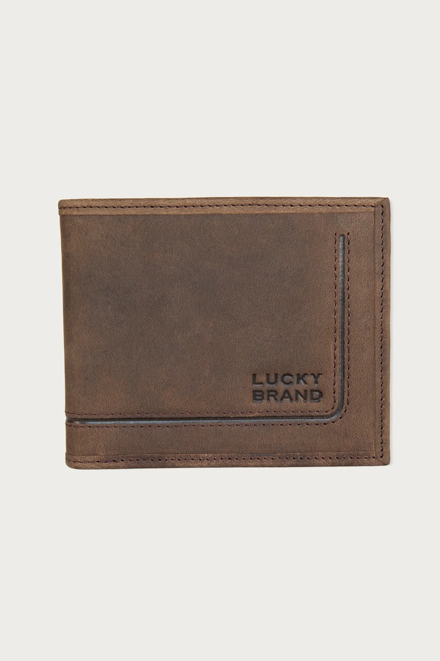 grooved leather bifold wallet
