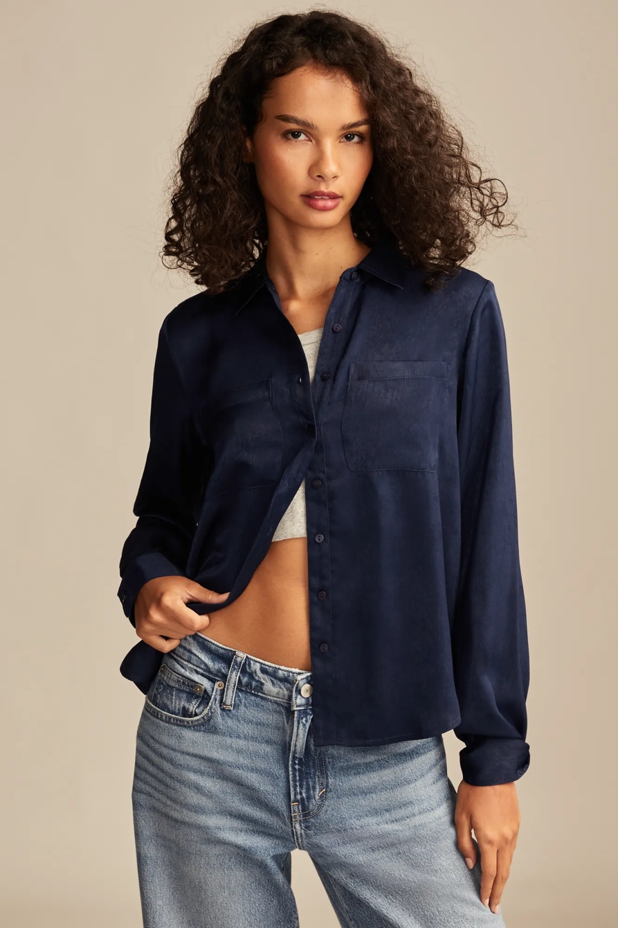 hammered satin button down shirt