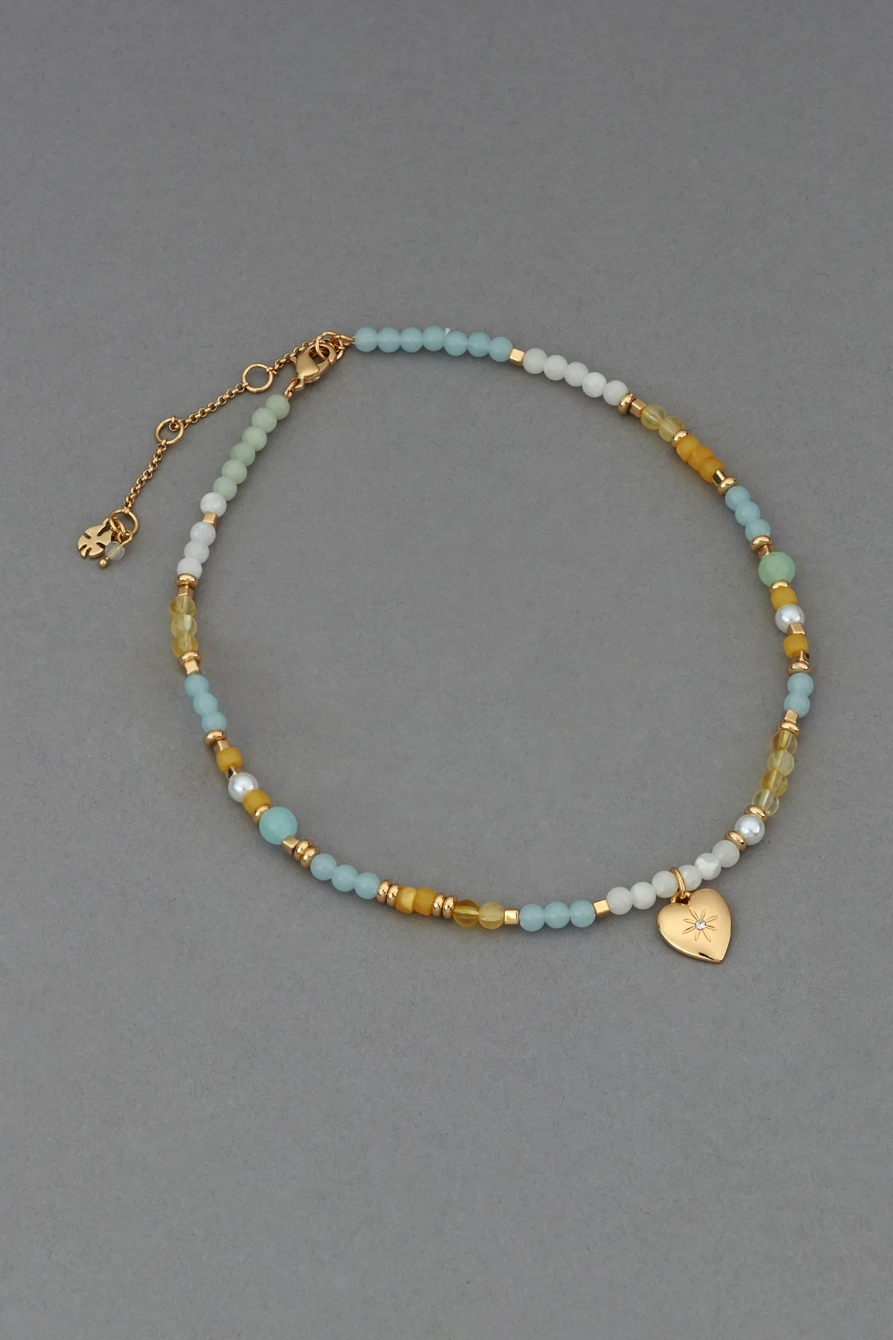 heart charm beaded collar necklace