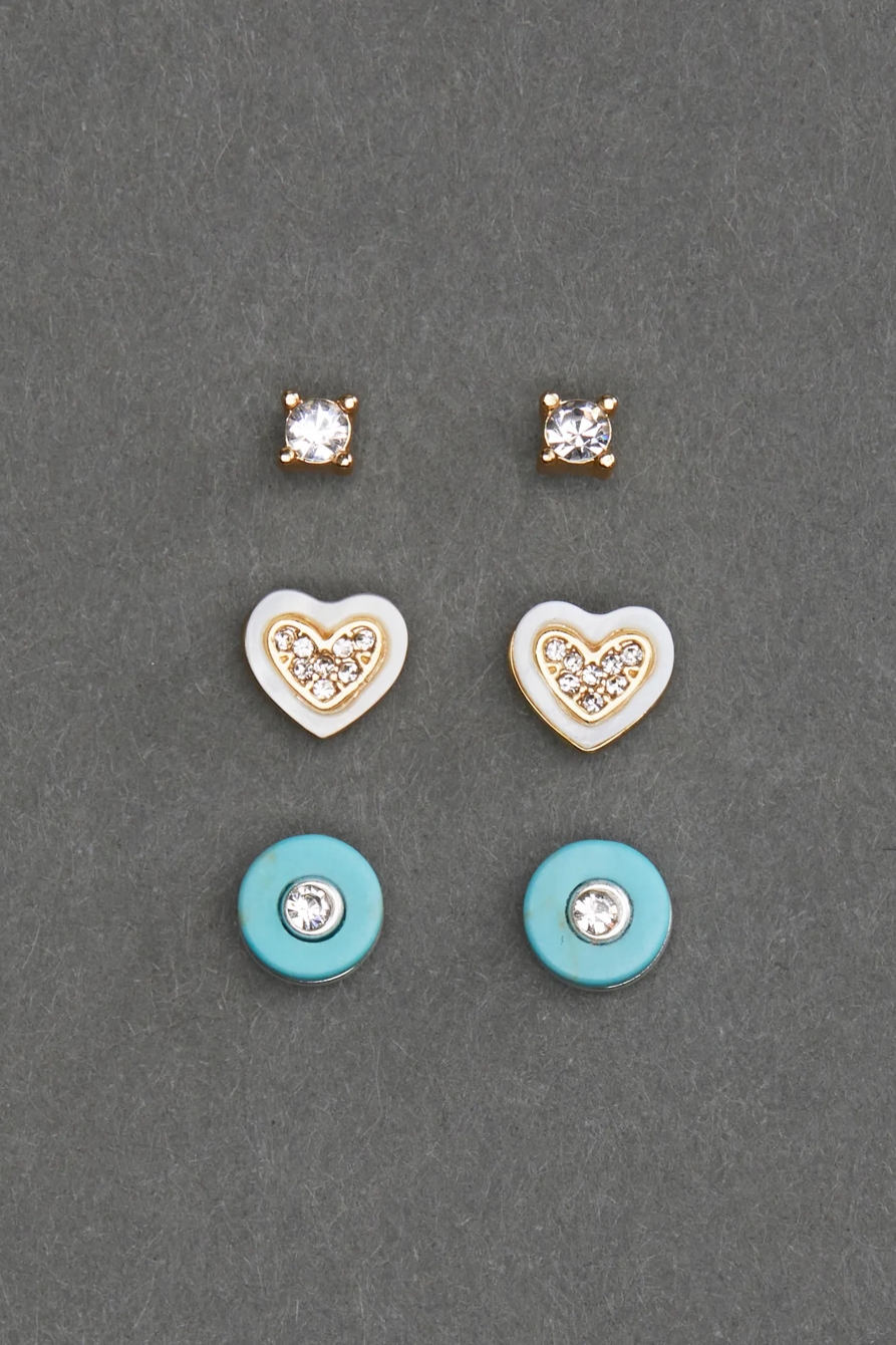 heart stud earring set
