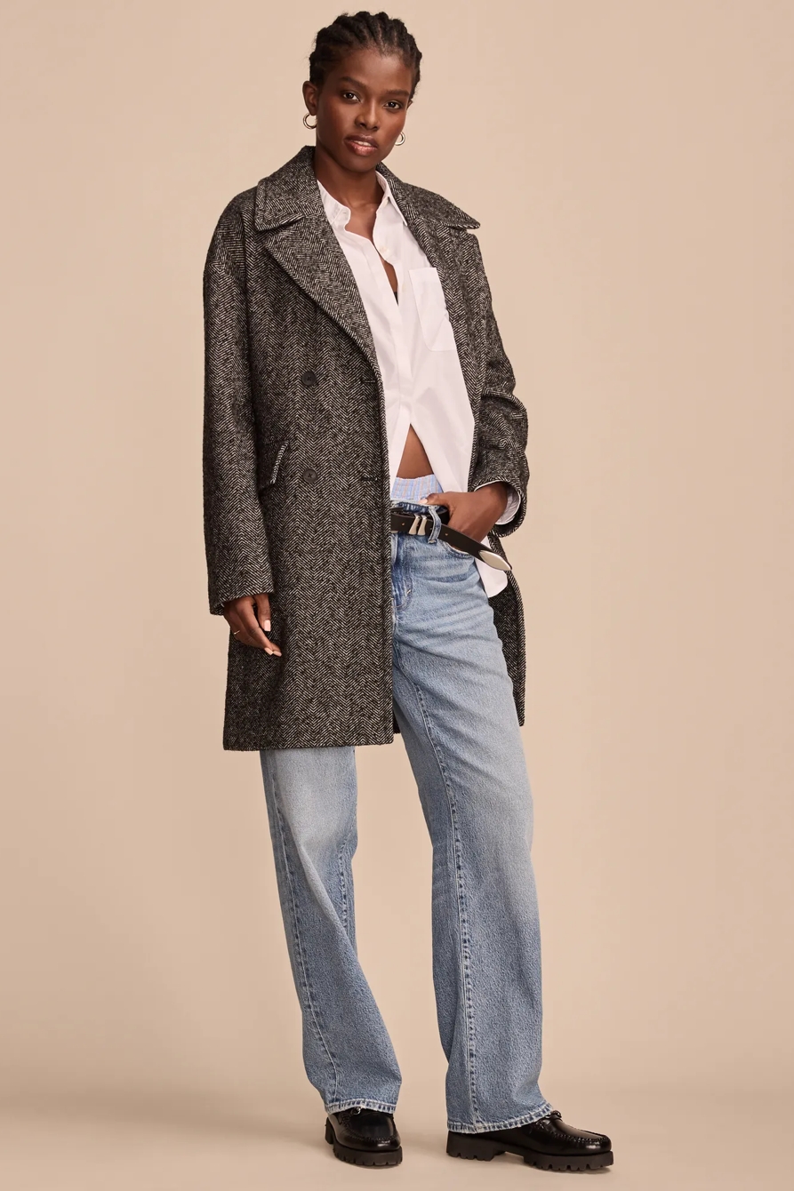 herringbone double breasted coat