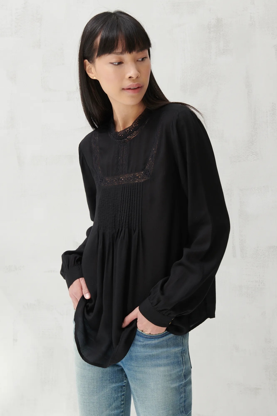 high neck lace inset top