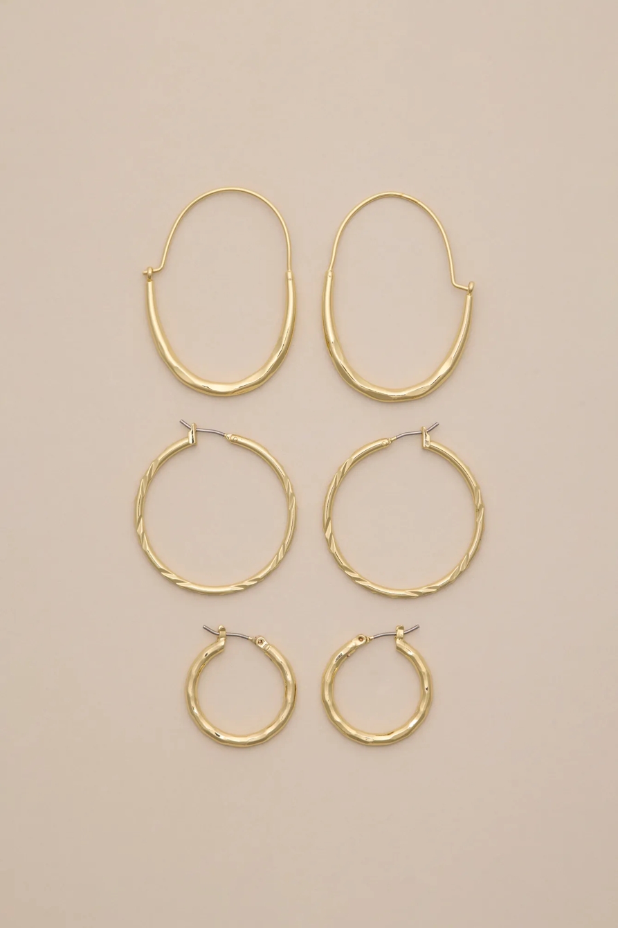 high shine thin gold hoop set
