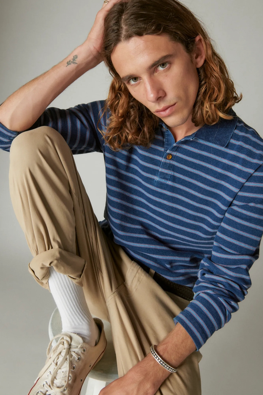 indigo pique stripe polo