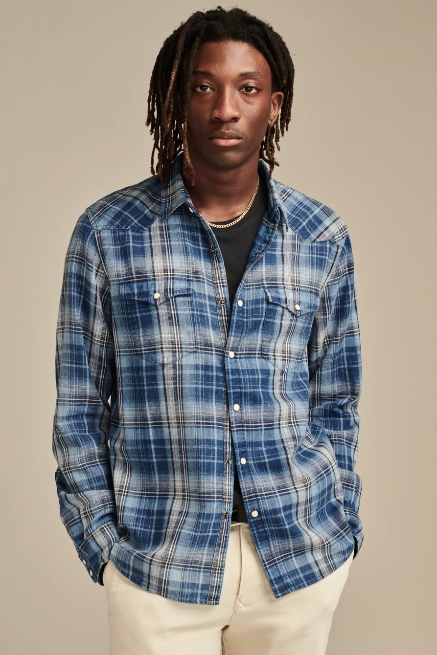 indigo plaid western long sleeve shirt