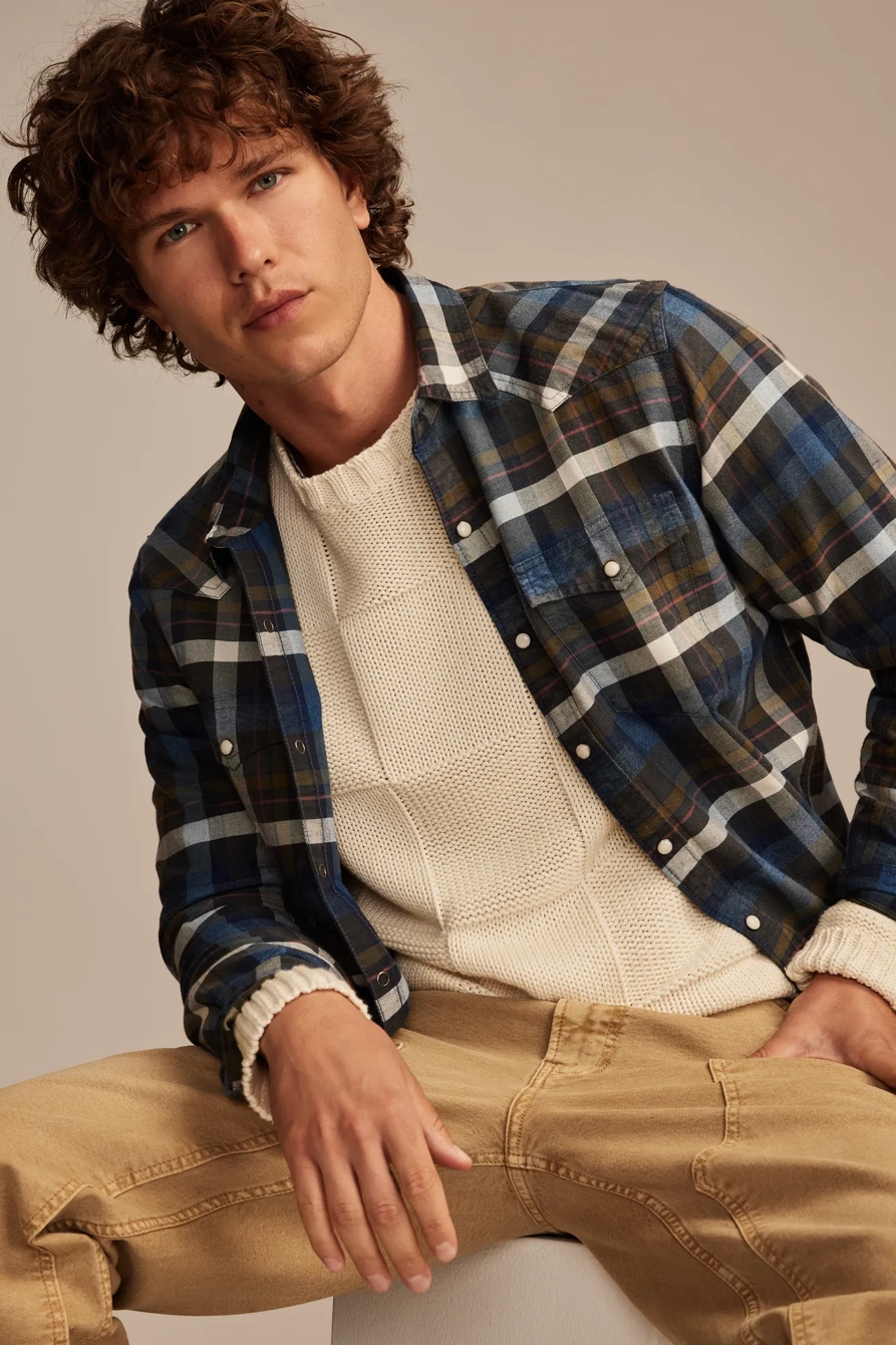 indigo plaid western long sleeve shirt
