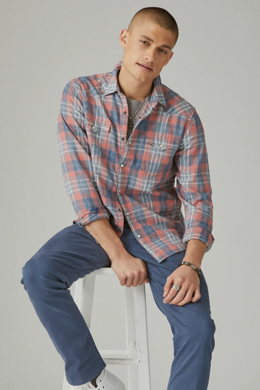 indigo plaid western long sleeve shirt