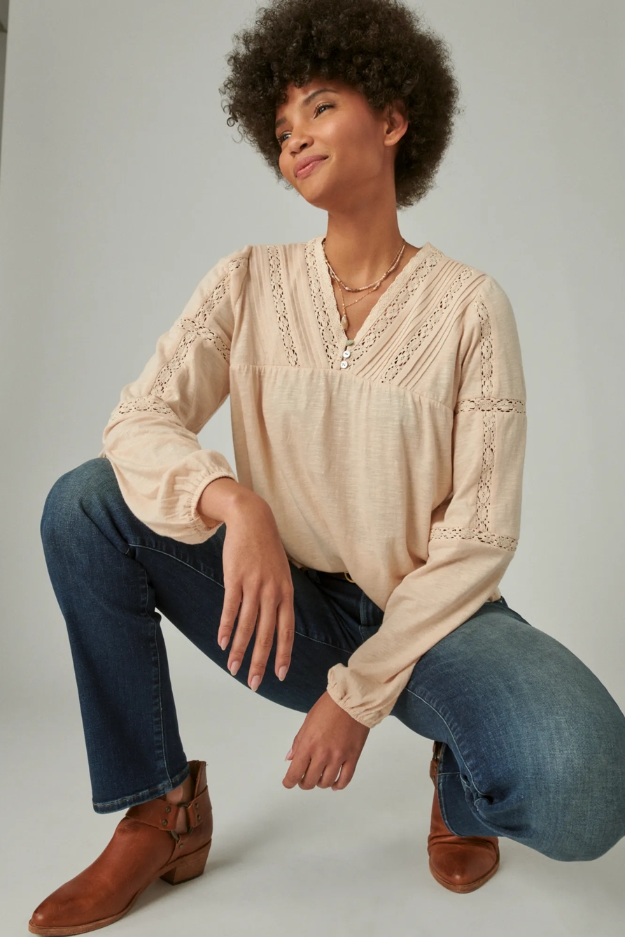 inset lace long sleeve peasant top