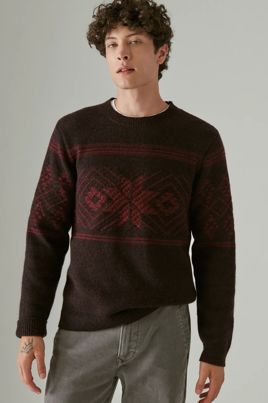 intarsia crew neck sweater