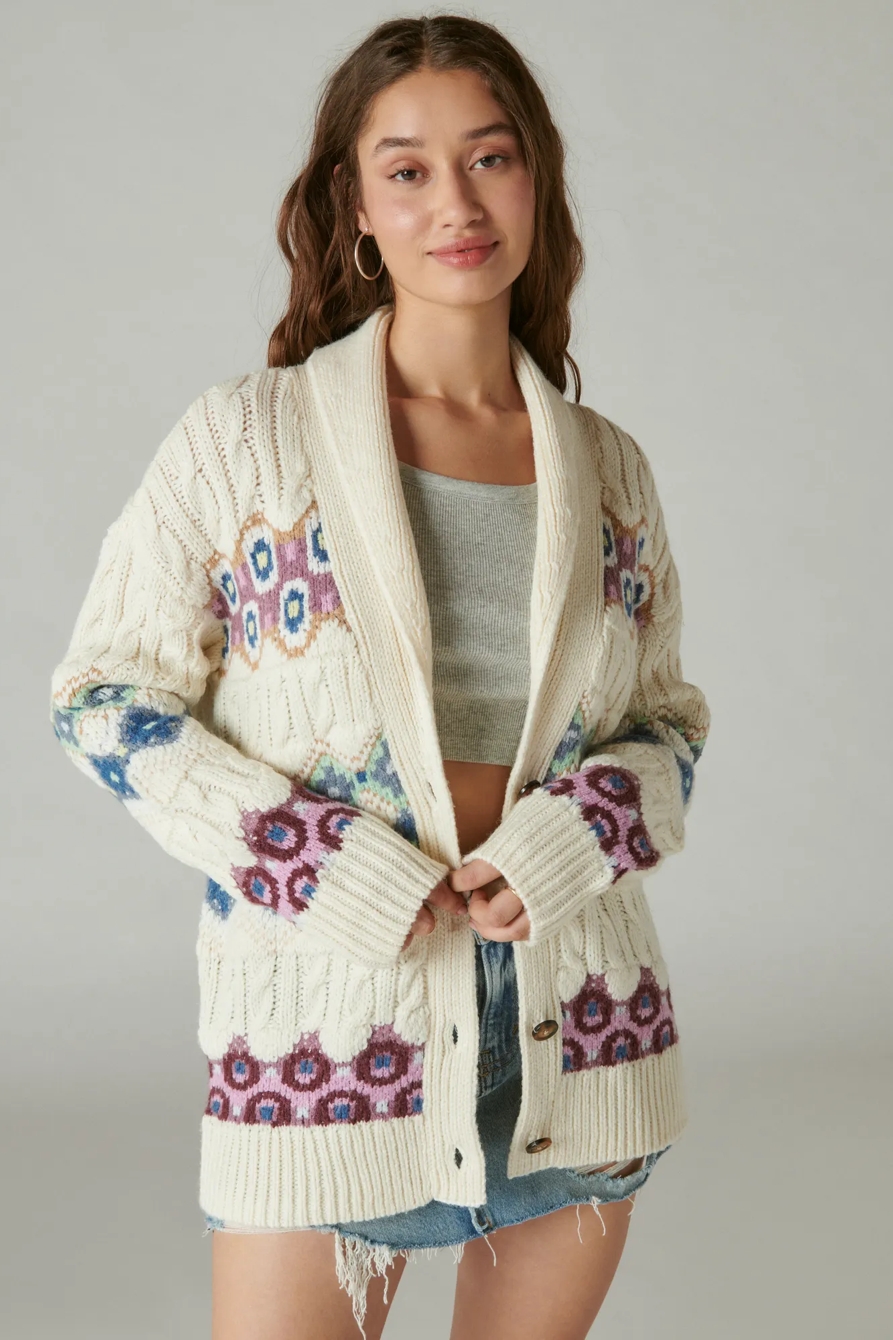 intarsia shawl collar cardigan