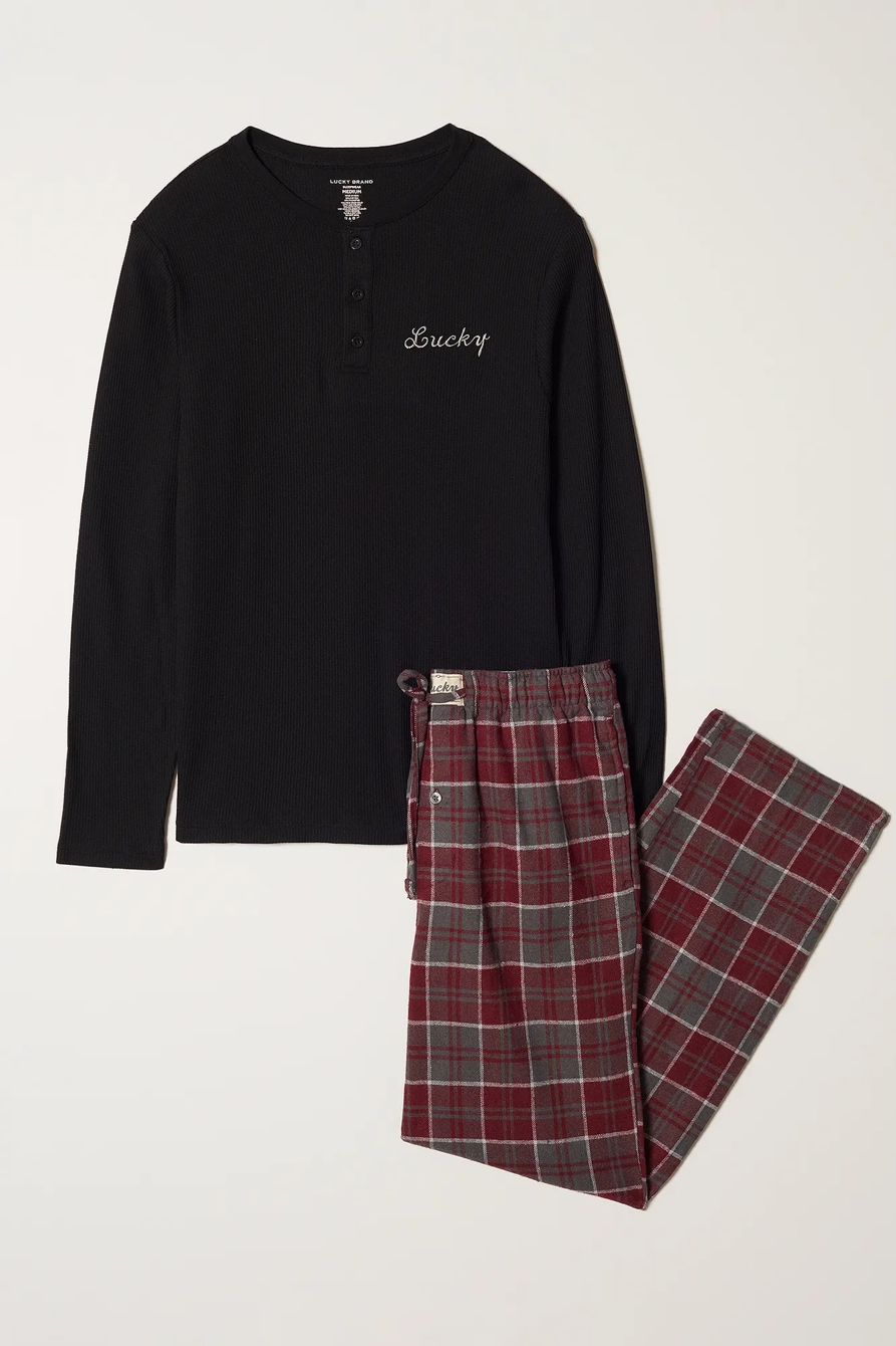 l/s thermal henley & flannel pant giftset