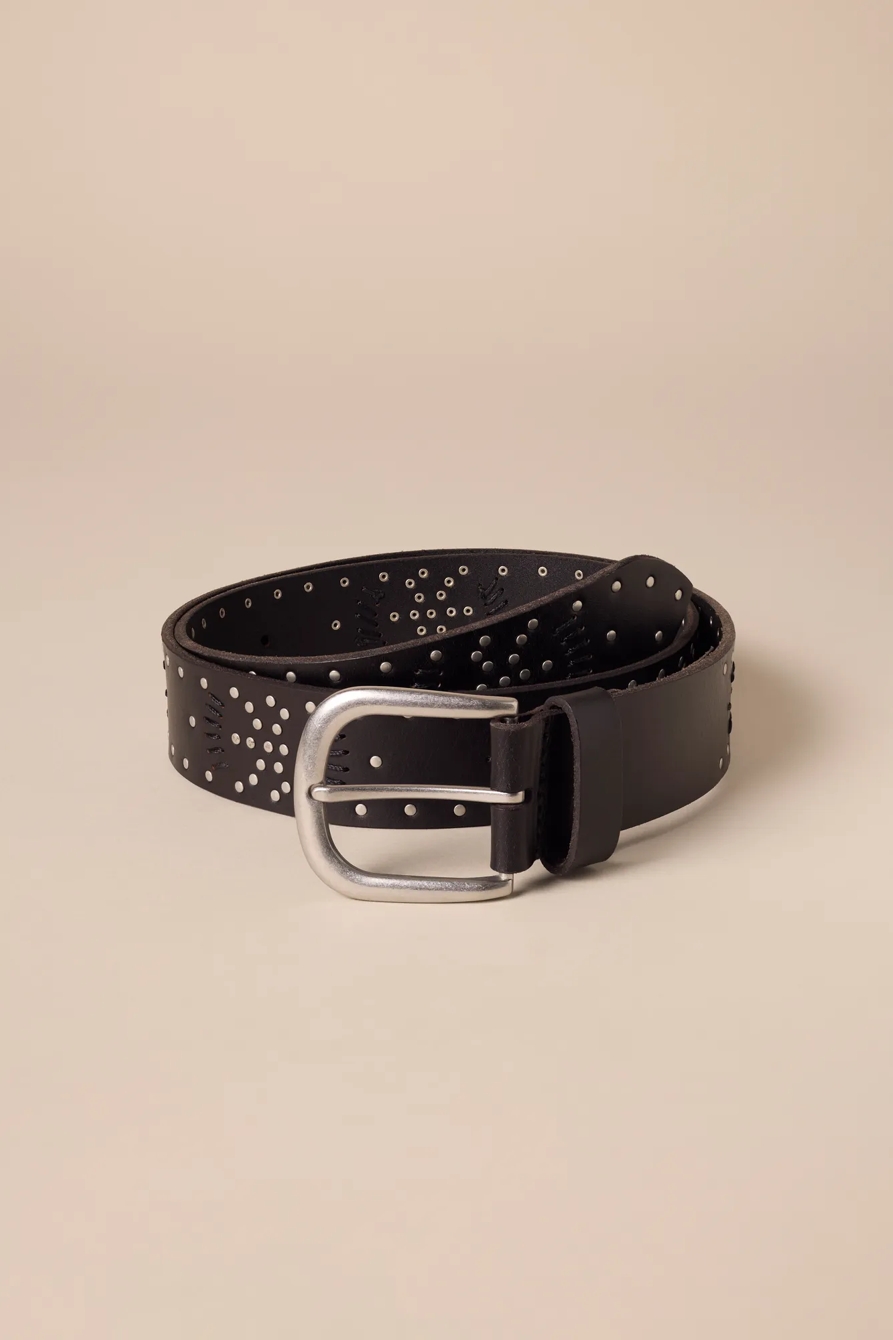 lace detail studded leather belt