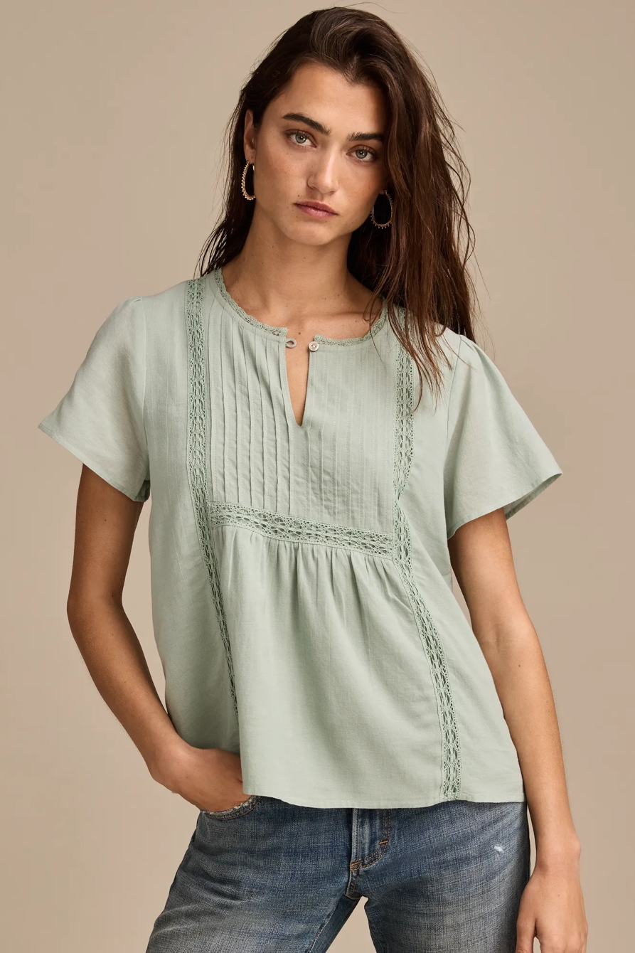 lace pintuck peasant blouse