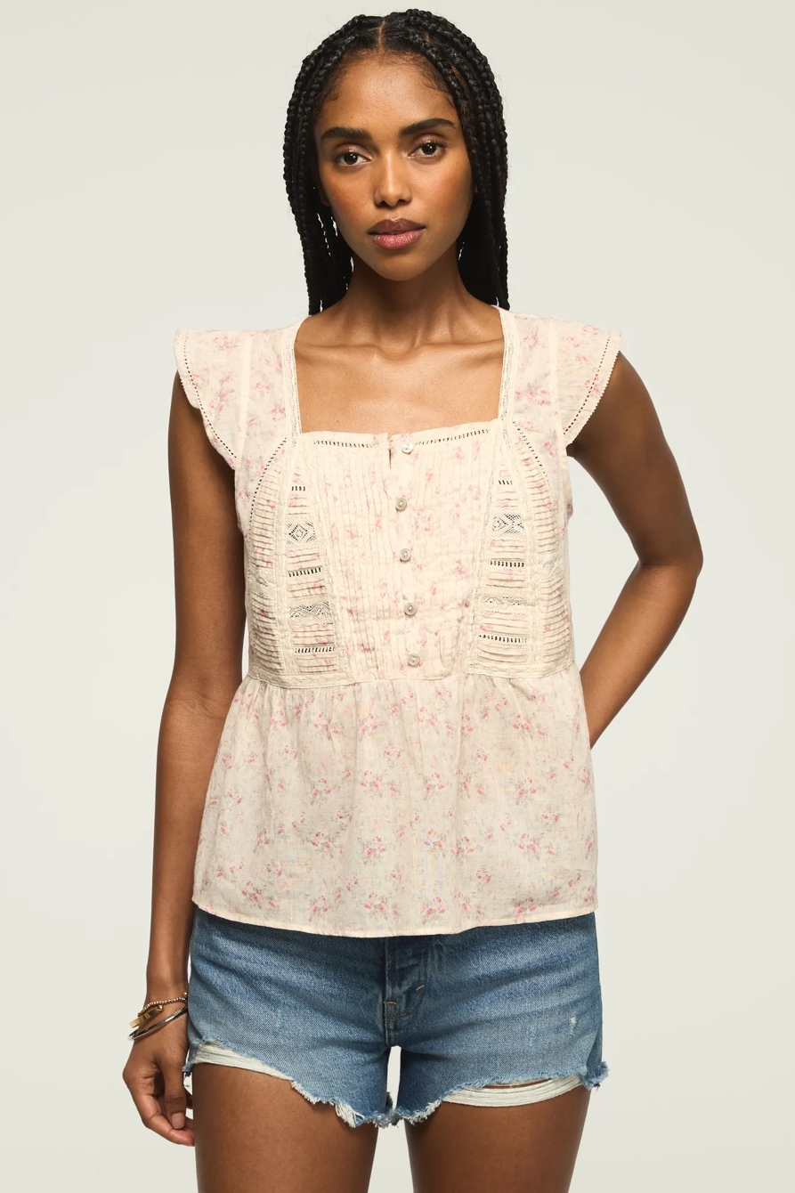 lace ruffle sleeveless buttondown