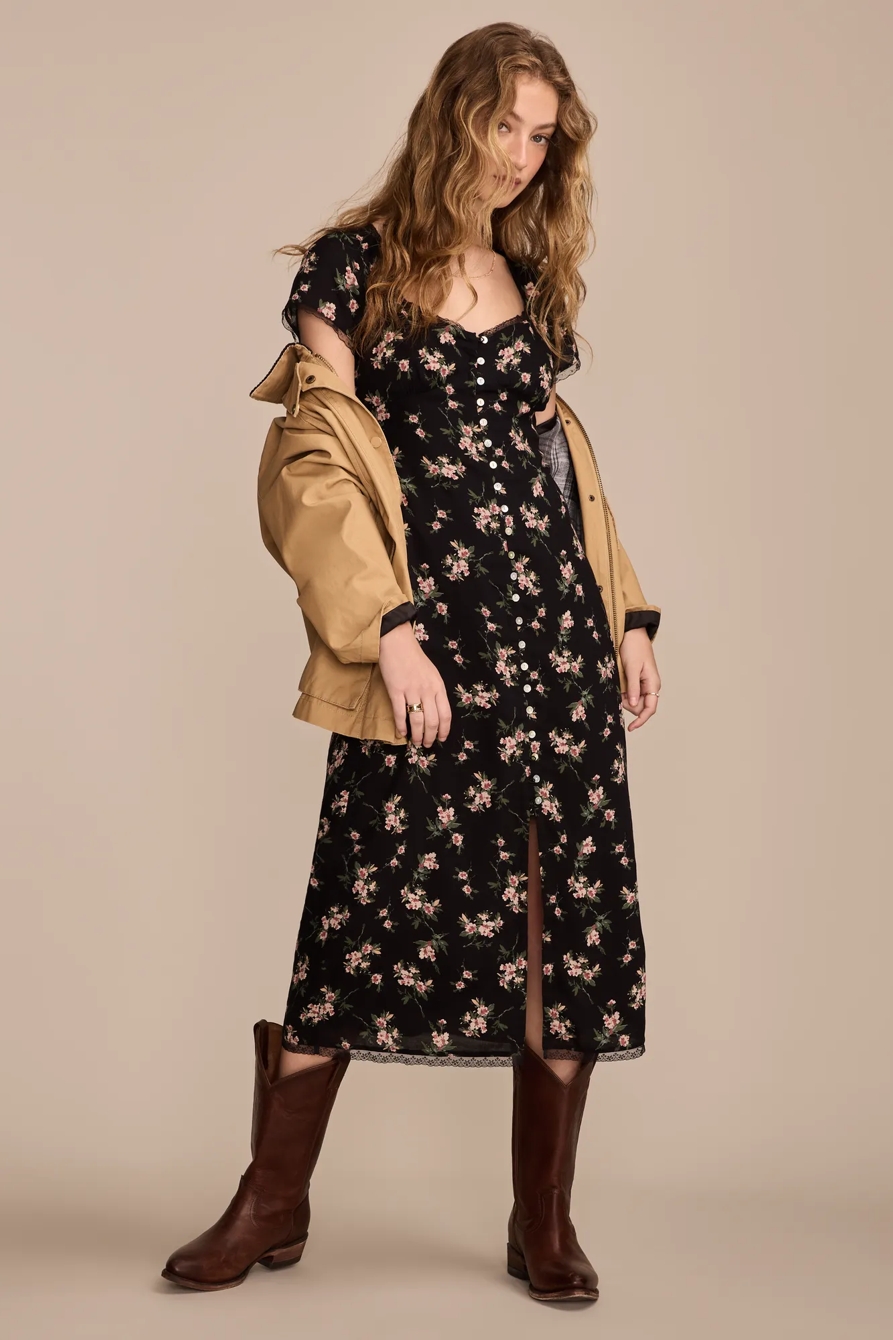 lace trimmed short sleeve midi dress
