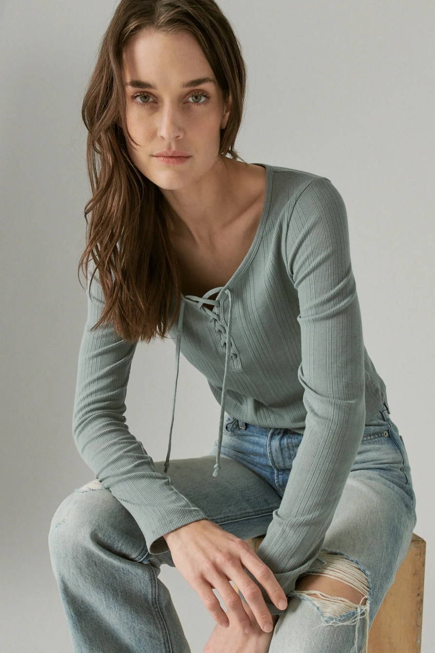 lace up long sleeve top