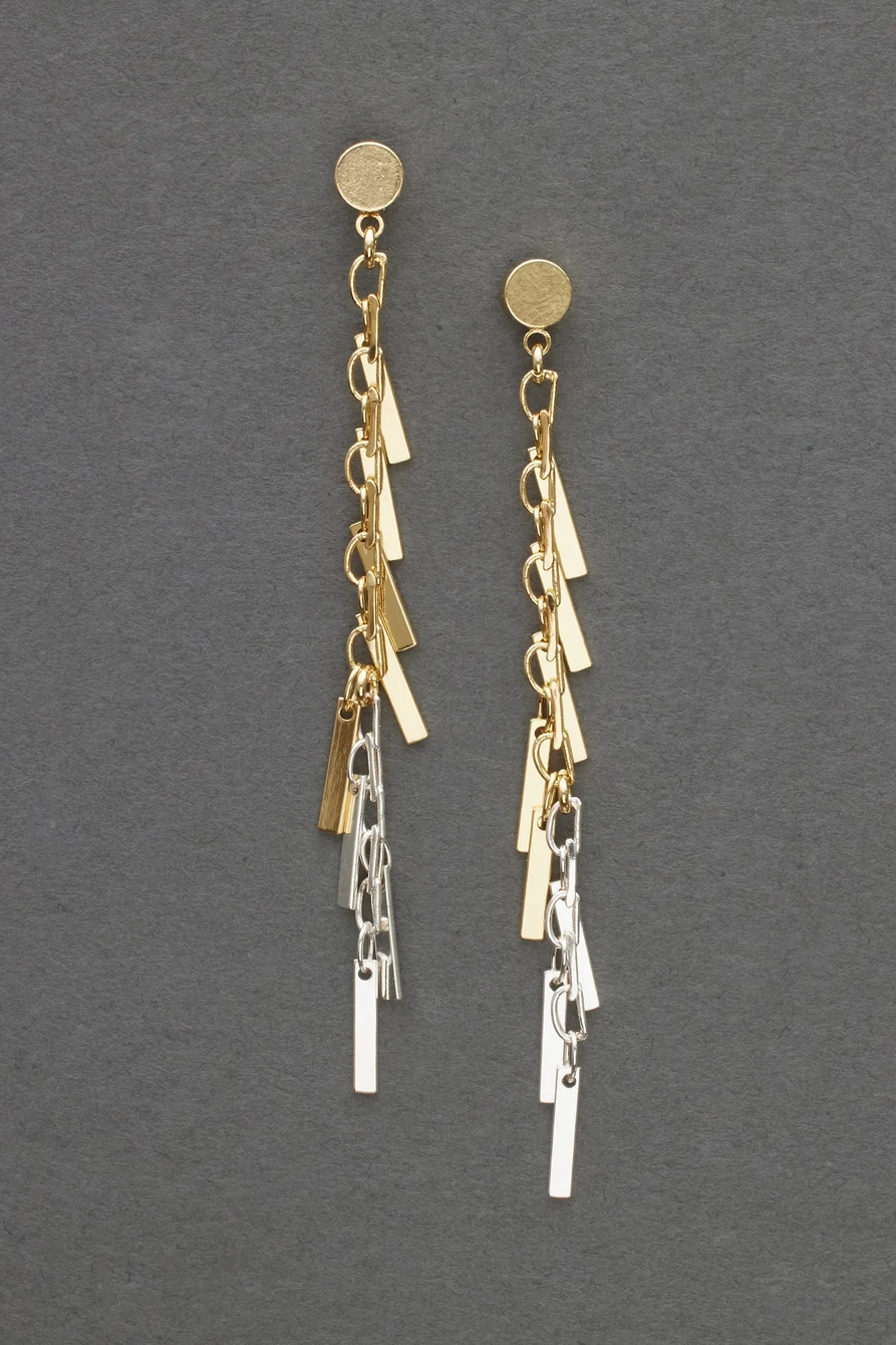 linear metal fringe stud earring