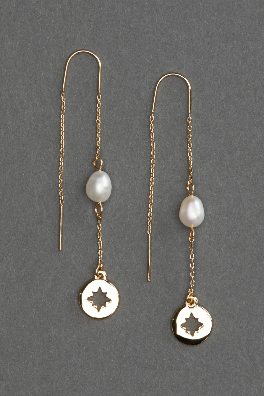 linear pearl star threader earring