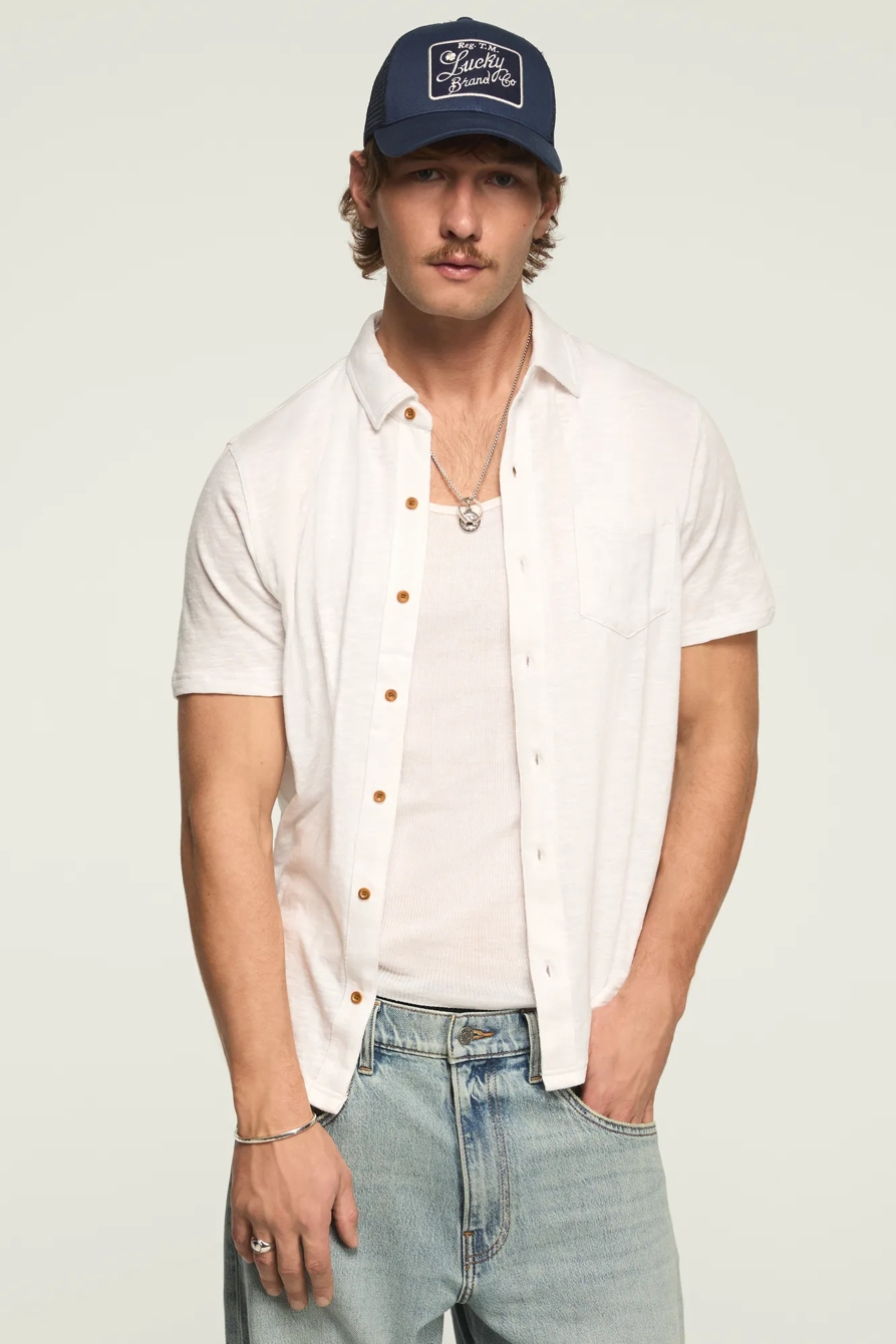linen knit button up shirt