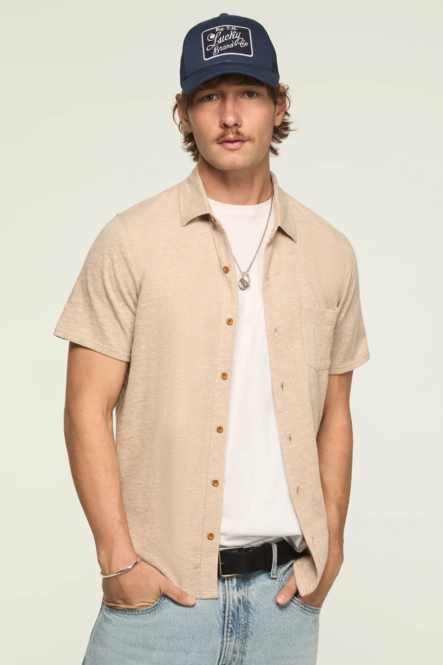linen knit button up shirt