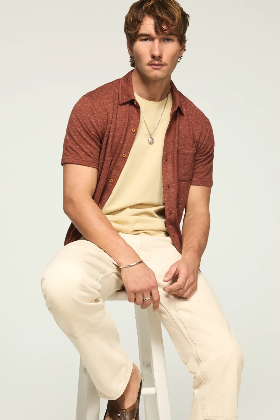 linen knit button up shirt