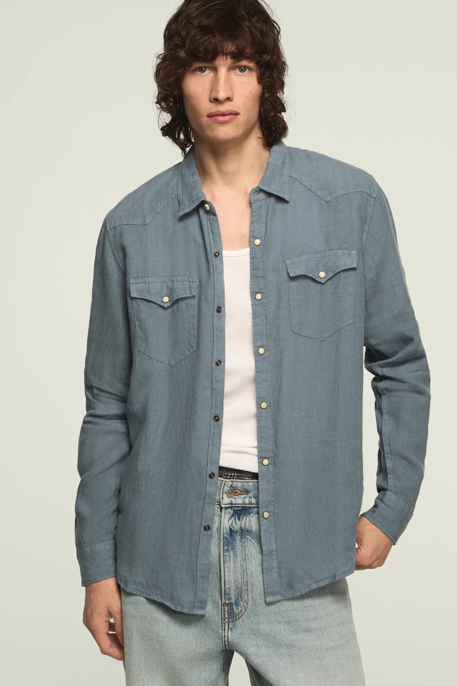 linen long sleeve western shirt