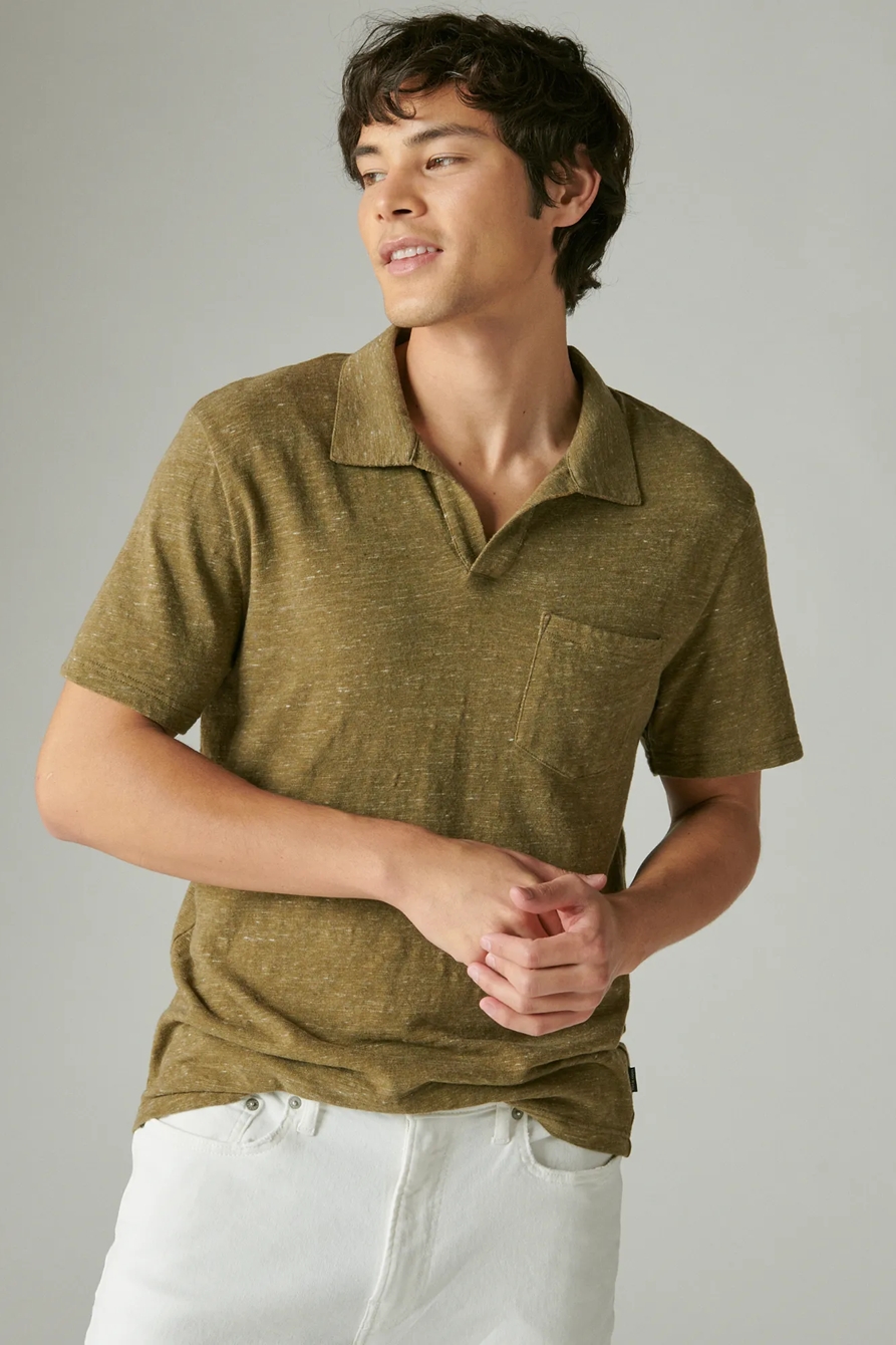 linen short sleeve johnny collar polo