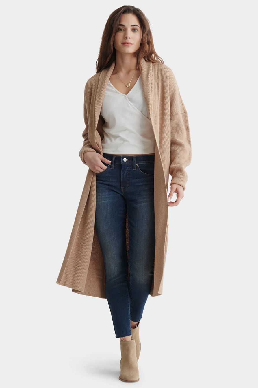 long-line open-front cardigan