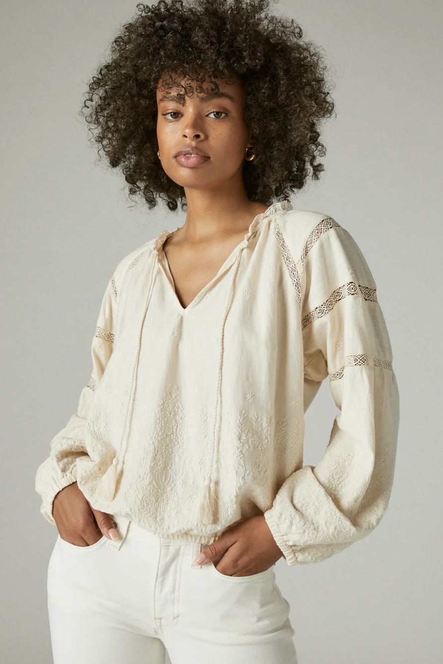 long sleeve embroidered knit top